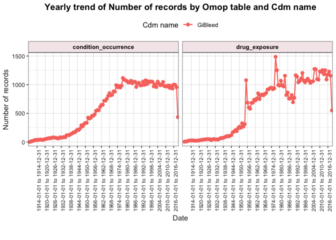 #> ℹ Summarising records with start before birth date in condition_occurrence.