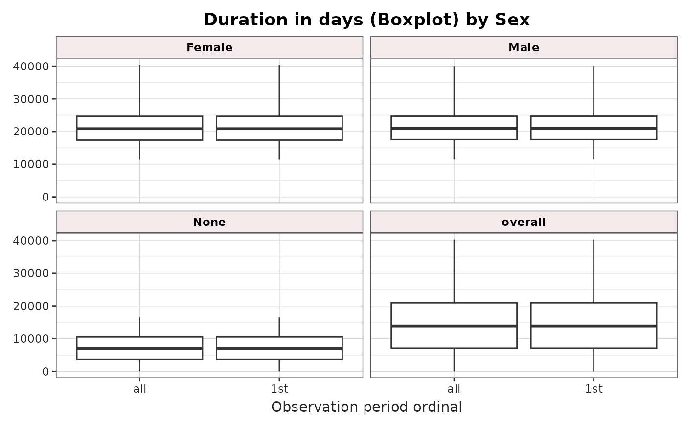 #> 8 1st Duration in days q95 29133By default, the function returns statistics for the Number of subjects, Duration in days, and Days to next observation both overall and by each ordinal observation period (for example, first, second, etc.).