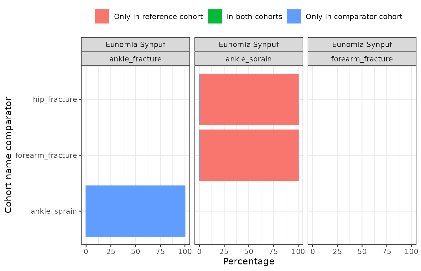 Only in reference cohort | In both cohorts | Only in comparator cohort | |||