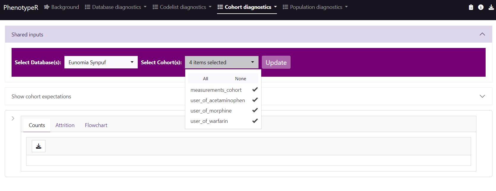 The first thing we will find when creating the PhenotypeR Shiny