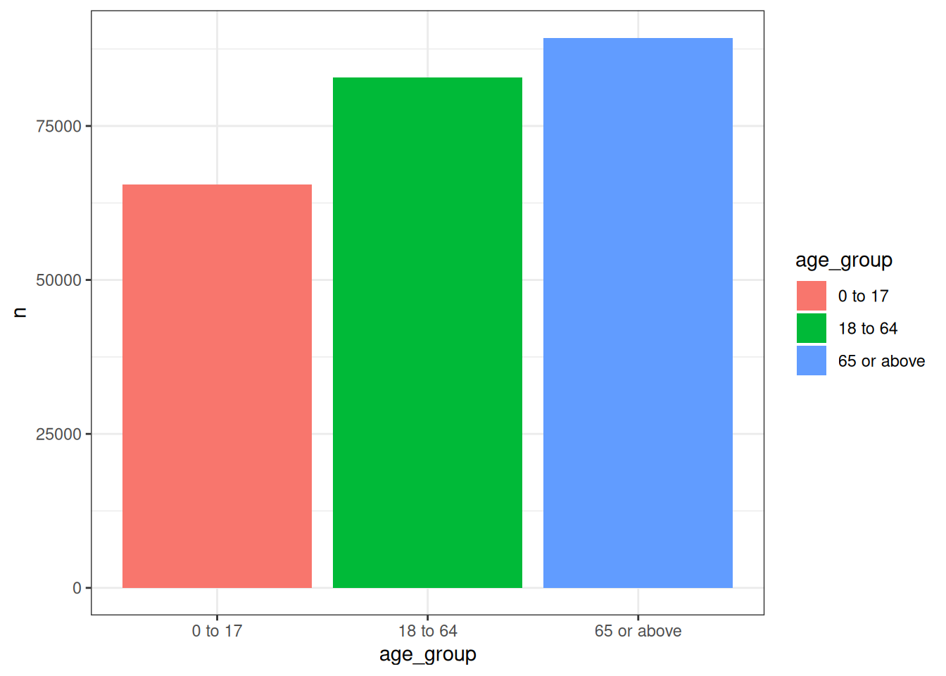 geom_col(aes(x = age_group, y = n, fill = age_group)) +